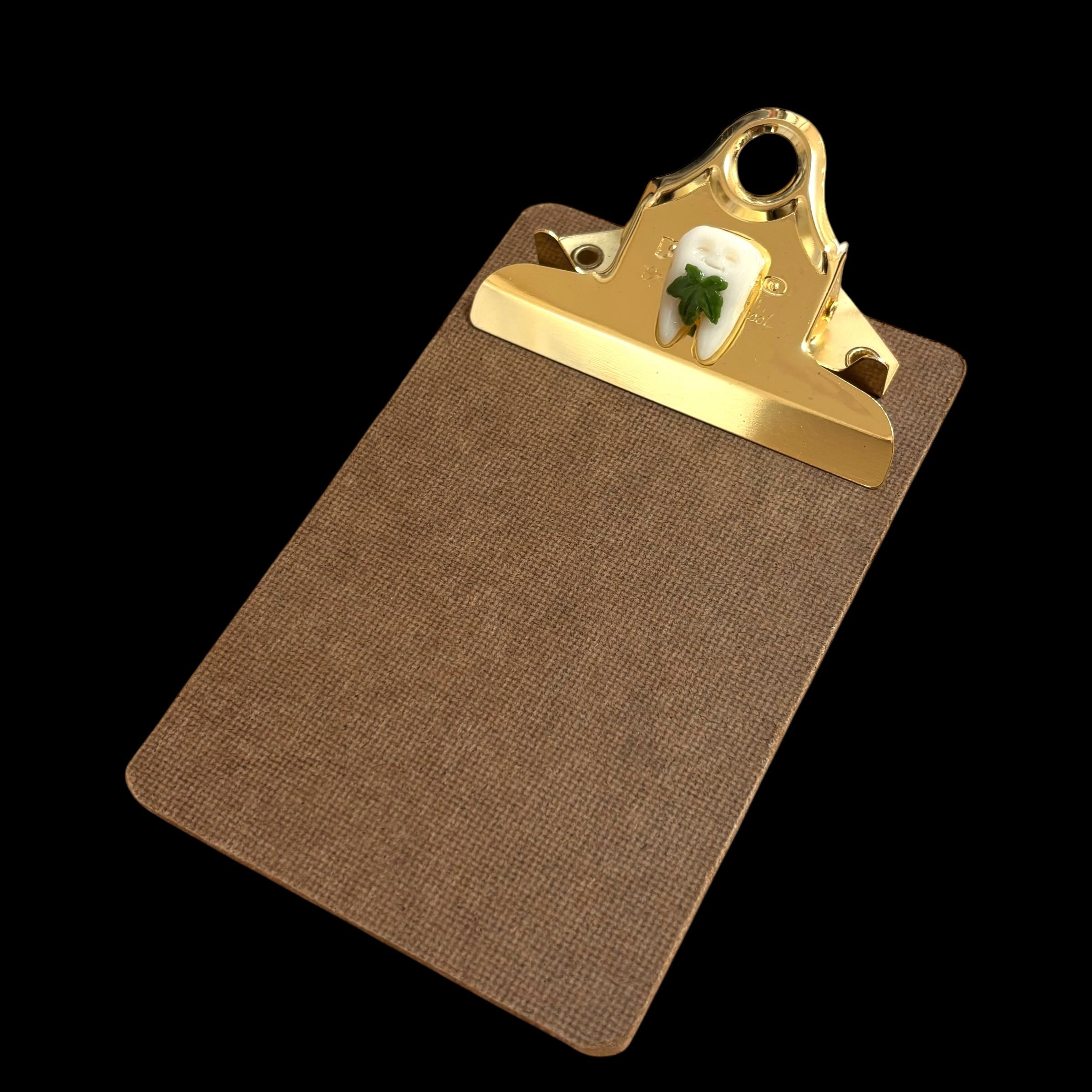 ミニサイズはゴールドのクリップボードにお股を葉っぱで隠した歯がついています。